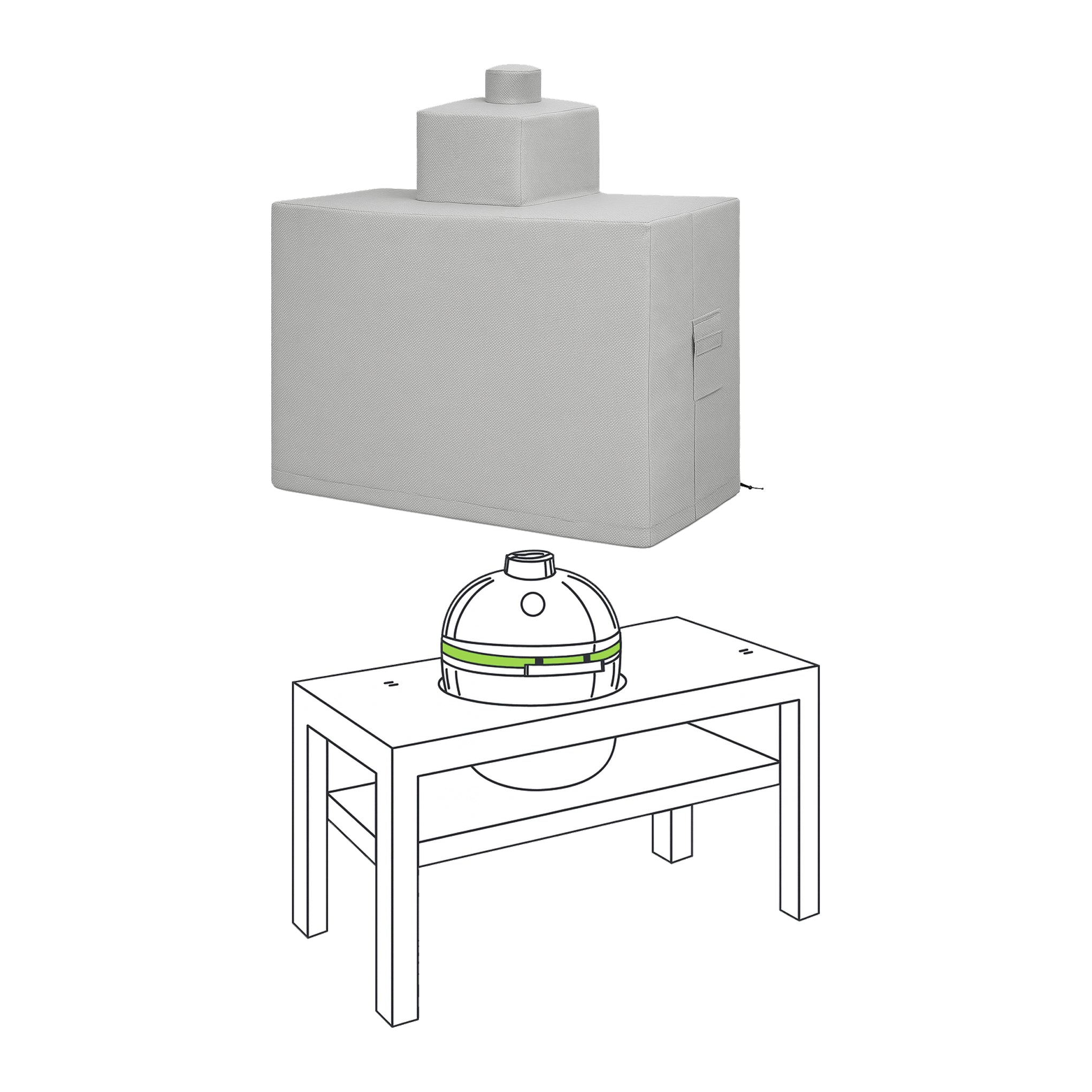 Its custom-engineered design captures the unique rounded profile of your ceramic grill while extending coverage to the full table structure, work surfaces, and any storage areas. With ten precise measurements, the cover eliminates gaps around the dome and table edges, ensuring every component stays protected from rain, snow, UV damage, and temperature fluctuations that can compromise ceramic and wood surfaces.