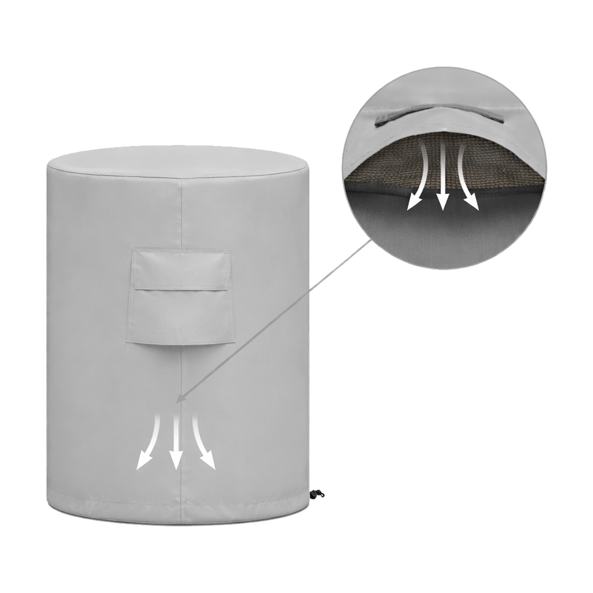 Designed with heavy-duty industry-exclusive 18 oz PVC-coated polyester, this cover offers waterproof protection with tear and UV-resistance that withstands harsh weather conditions. Built-in air vents prevent condensation and promote air circulation to help prevent mold and mildew growth. The option drawstring closure keeps the cover in place, and reinforced handles make installation a breeze.