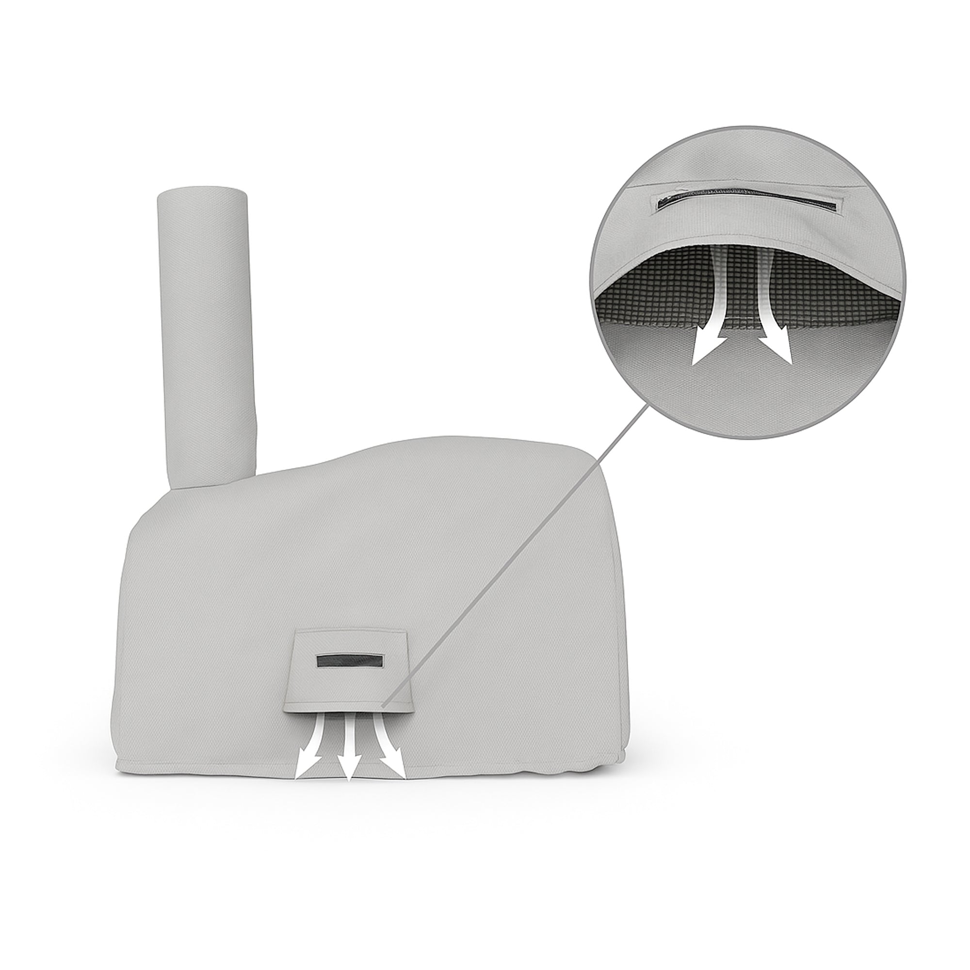 • Breathable Design Prevents Moisture Damage:The integrated vent system is critical for dome ovens. After firing, the thick refractory materials retain heat for hours, and as the oven cools, temperature differentials create condensation. Built-in airflow prevents this moisture from being trapped against the dome surface, which can penetrate ceramic fiber insulation, damage clay or brick mortar, and cause rust on metal chimney components. The breathable design allows air circulation while maintaining complete waterproof protection from rain and snow—preserving the integrity of your oven's refractory materials and preventing the moisture infiltration that leads to freeze-thaw damage in colder climates.