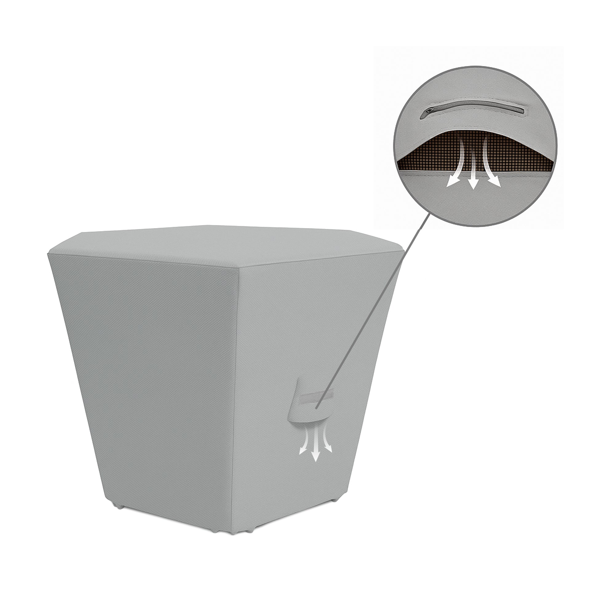 • Ventilated, Weatherproof Engineering: Strategic air vents maintain airflow beneath the cover, reducing humidity buildup without compromising waterproofing. The flat hexagonal top and angled sides promote natural water runoff, preventing pooling, while the geometric design provides excellent wind deflection.