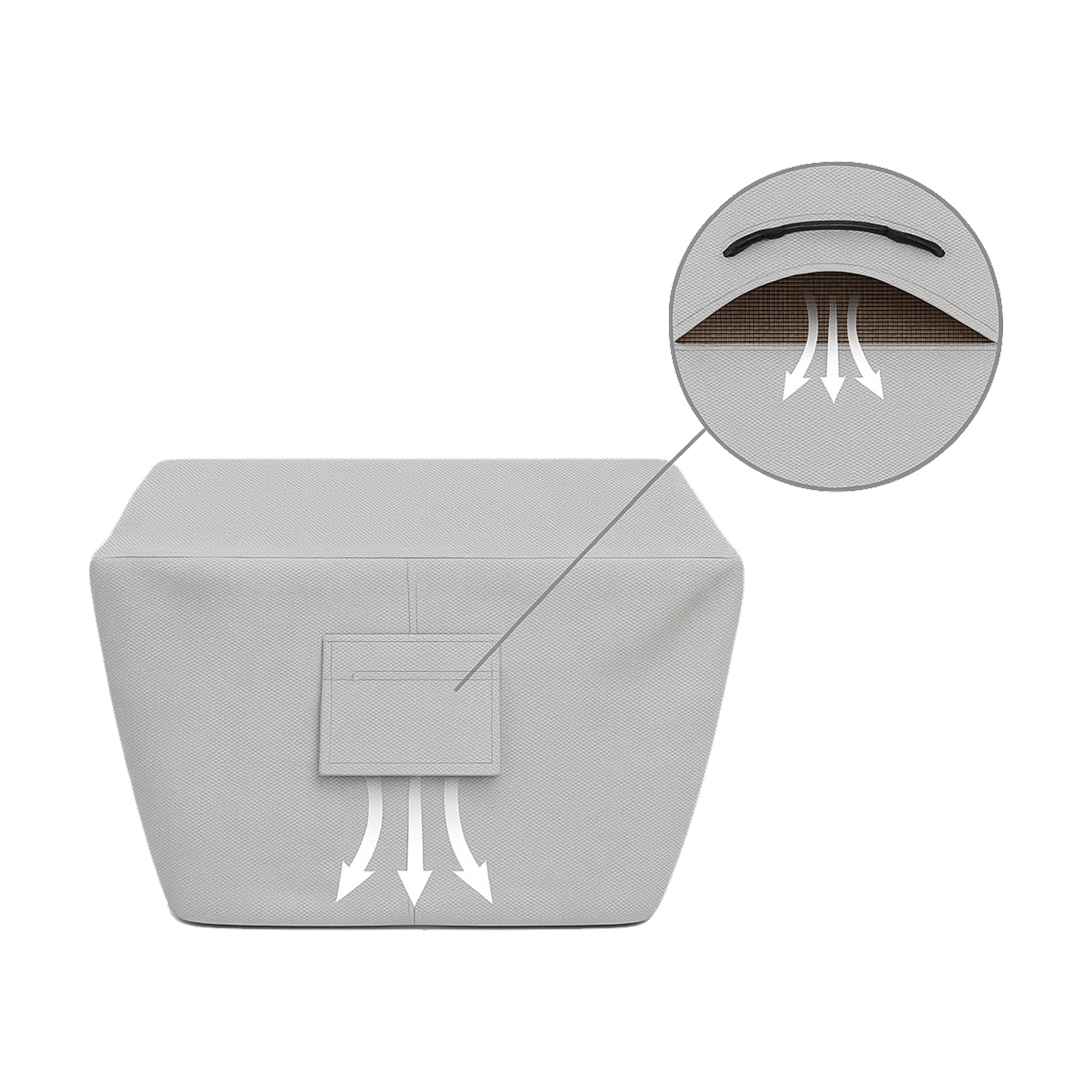 Made from commercial-grade 18 oz PVC-coated polyester, these Square Fire Column Custom Covers deliver comprehensive weather protection, shielding your fire column from rainfall, snow buildup, UV exposure, windblown dirt, and seasonal debris. The drawstring closure with a secure cord lock keeps the cover firmly positioned at the base, while the ventilation system maintains proper airflow to prevent condensation and protect your fire column's finish from moisture-related damage.
