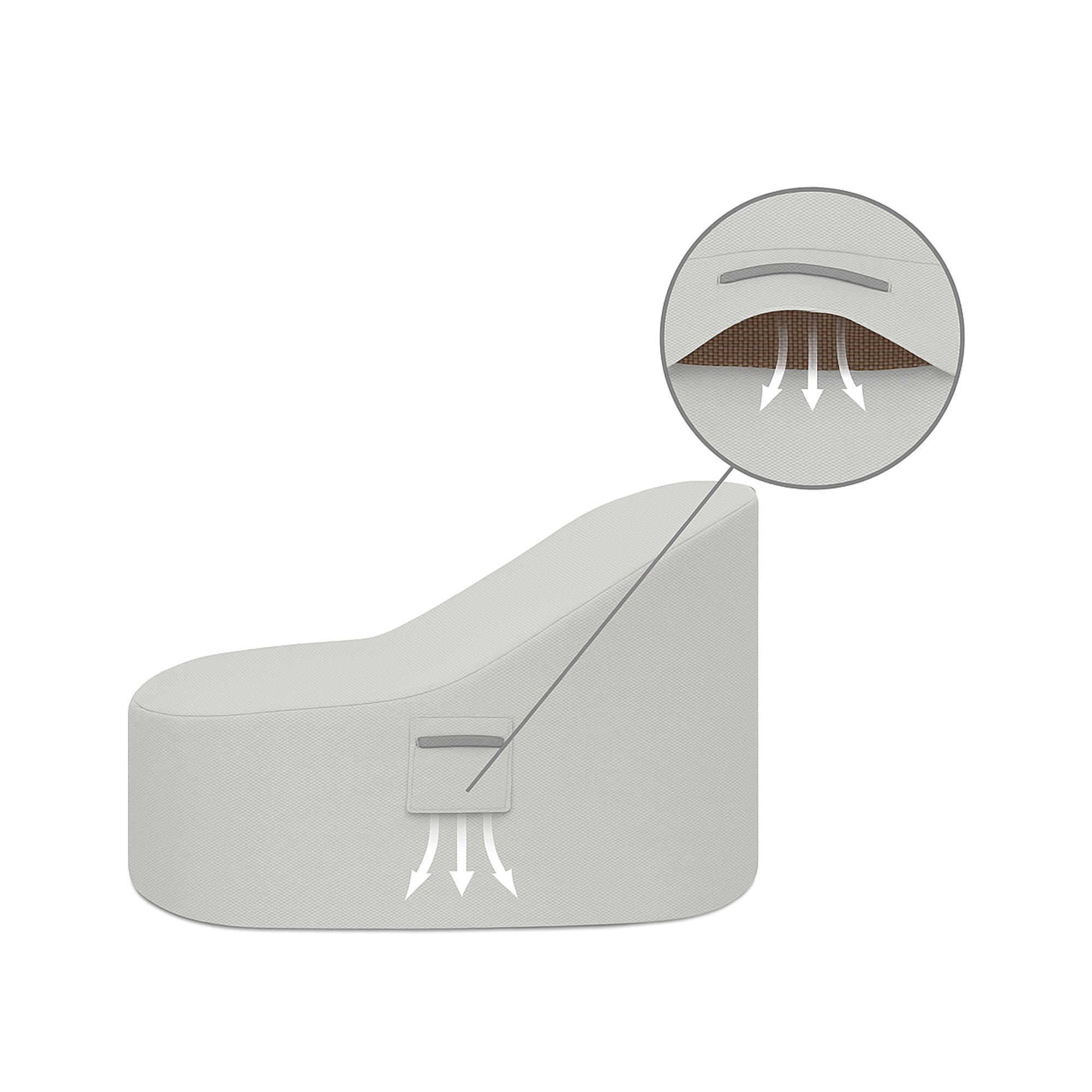 Integrated ventilation panels are distributed throughout both seating and ottoman chambers, promoting continuous airflow that stops moisture buildup in cushion crevices and under armrests. Multiple heavy-duty handles are positioned strategically for balanced coverage, allowing you to secure the cover over the entire modular structure without straining.