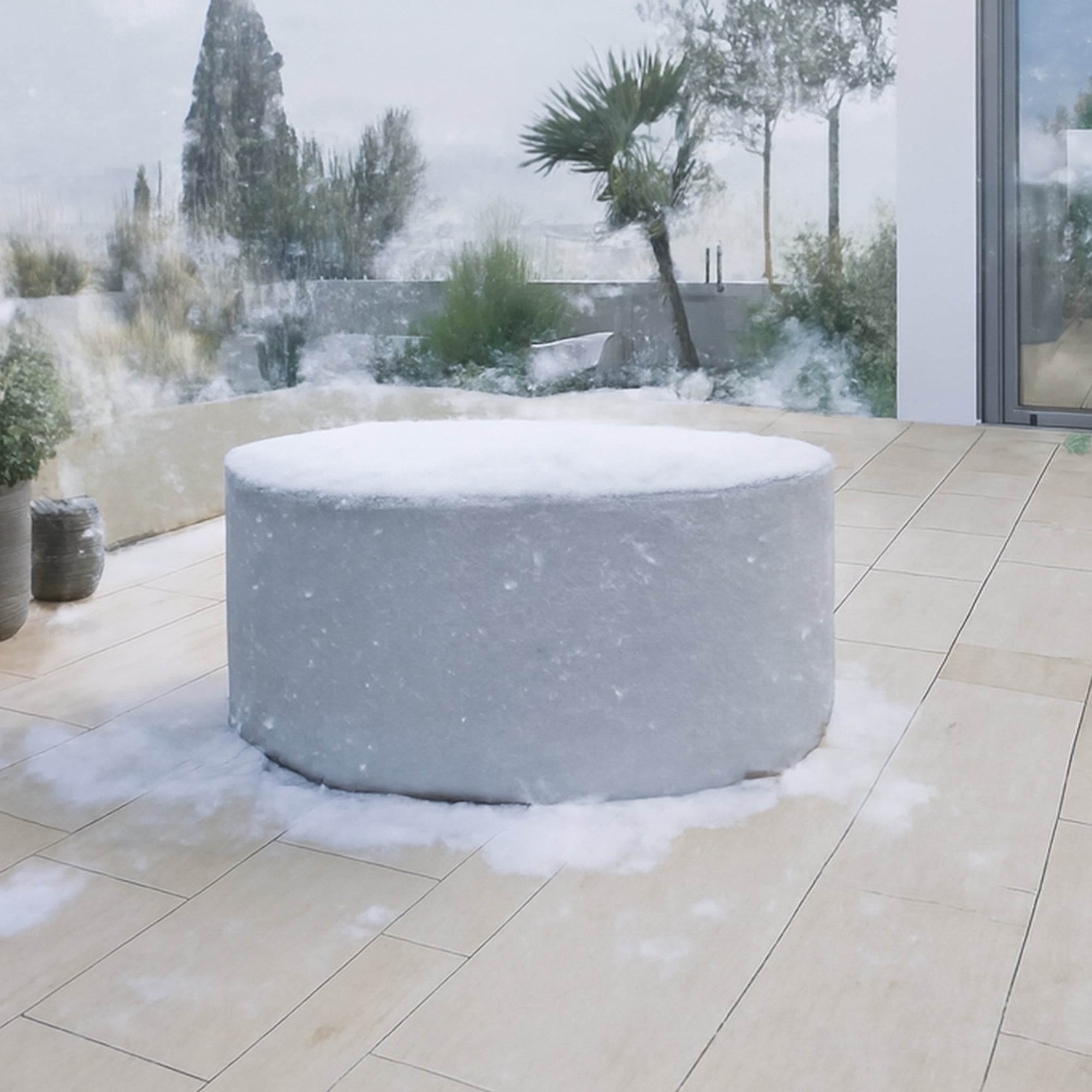 The octagonal design provides exceptional aerodynamic properties. The eight flat faces and multiple angled corners help deflect wind from virtually any direction. Combined with the heavy 18 oz material and secure drawstring system, the cover remains stable even in strong winds with minimal flapping or stress.