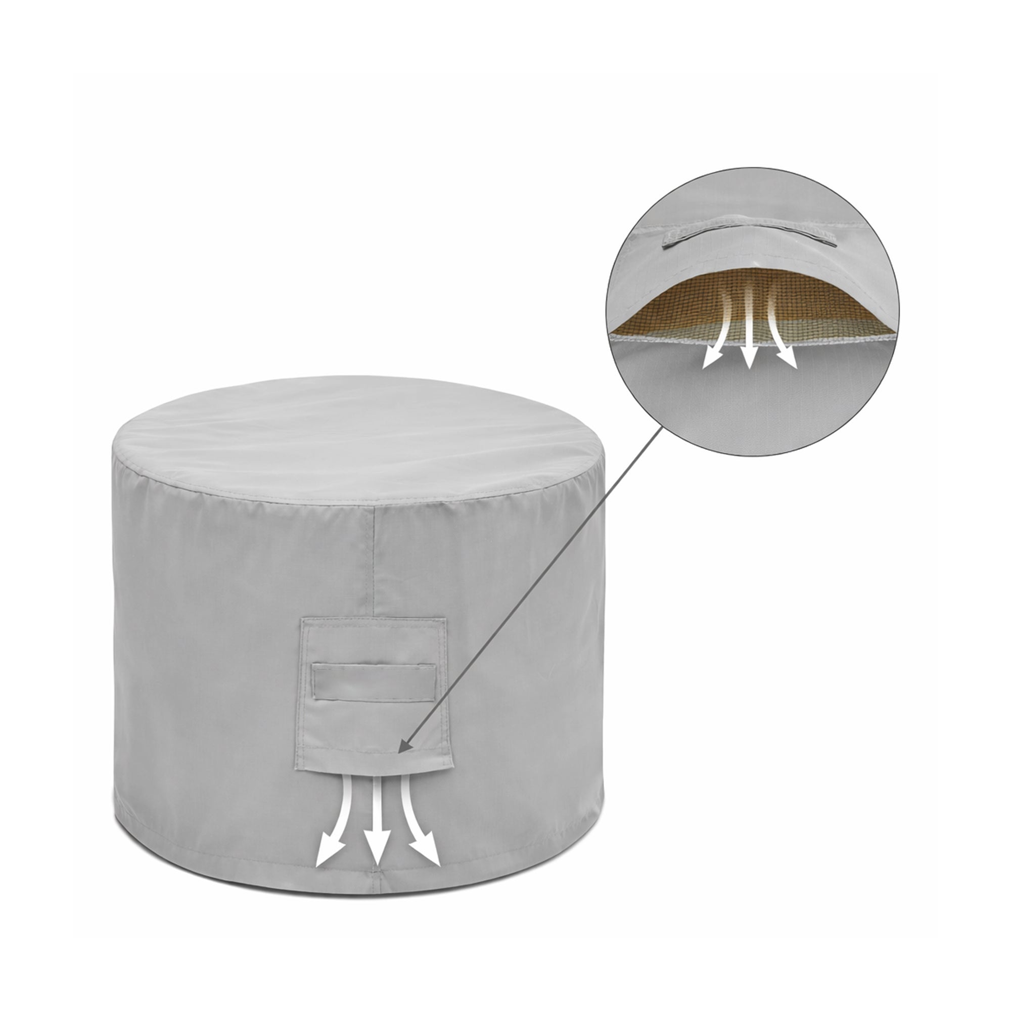 • Easy Installation, Moisture Control Built In:Air vents allow trapped heat and moisture to escape, reducing the risk of condensation and mildew. Handles make it easier to place the cover over wider oval sets. Drawstrings tighten the base, and optional grommets provide added wind resistance.