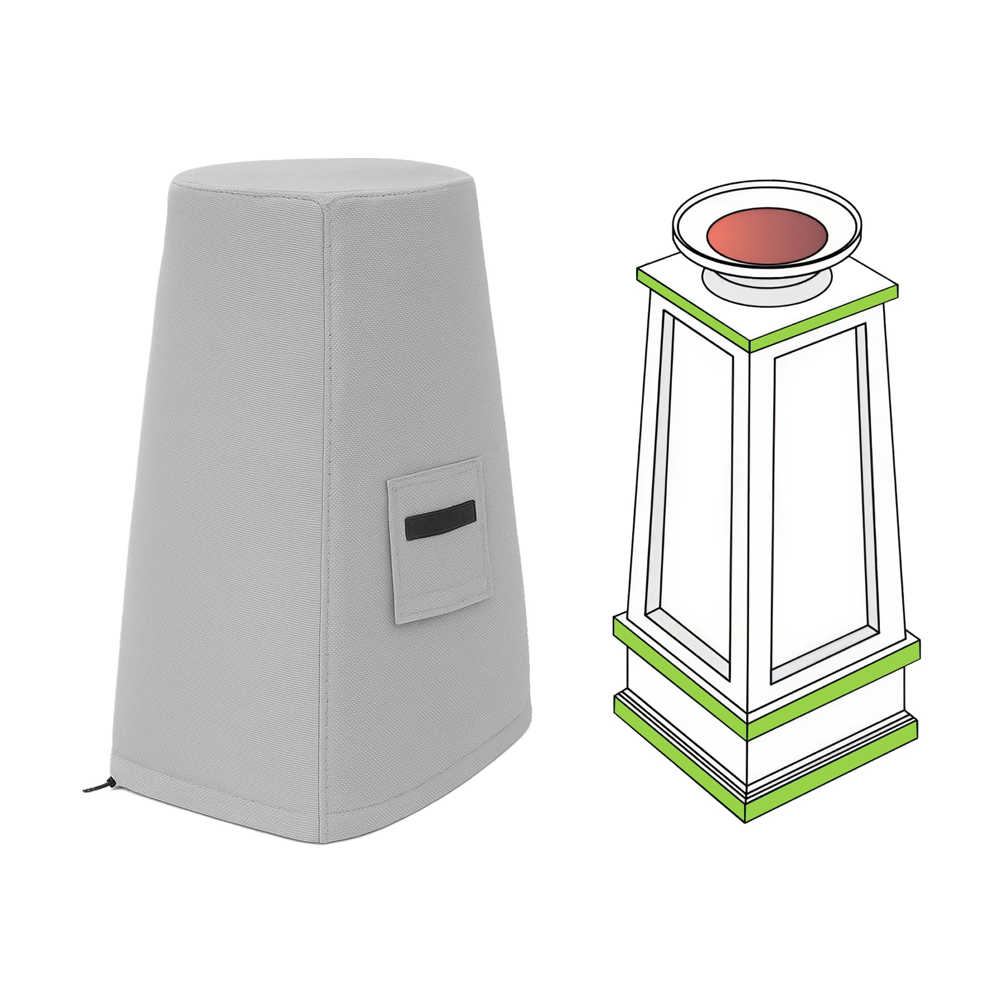 The Custom Fire Column Cover - Style 7, also referred to as Tapered Fire Column Custom Covers, is purpose-built for fire columns with narrowing profiles that transition from a wider base to a smaller top section. Unlike generic covers, this solution uses a five-measurement customization process—height, base width, base depth, upper width, and upper depth—to create a tailored fit that follows your fire column's unique contours without loose material or gaps.