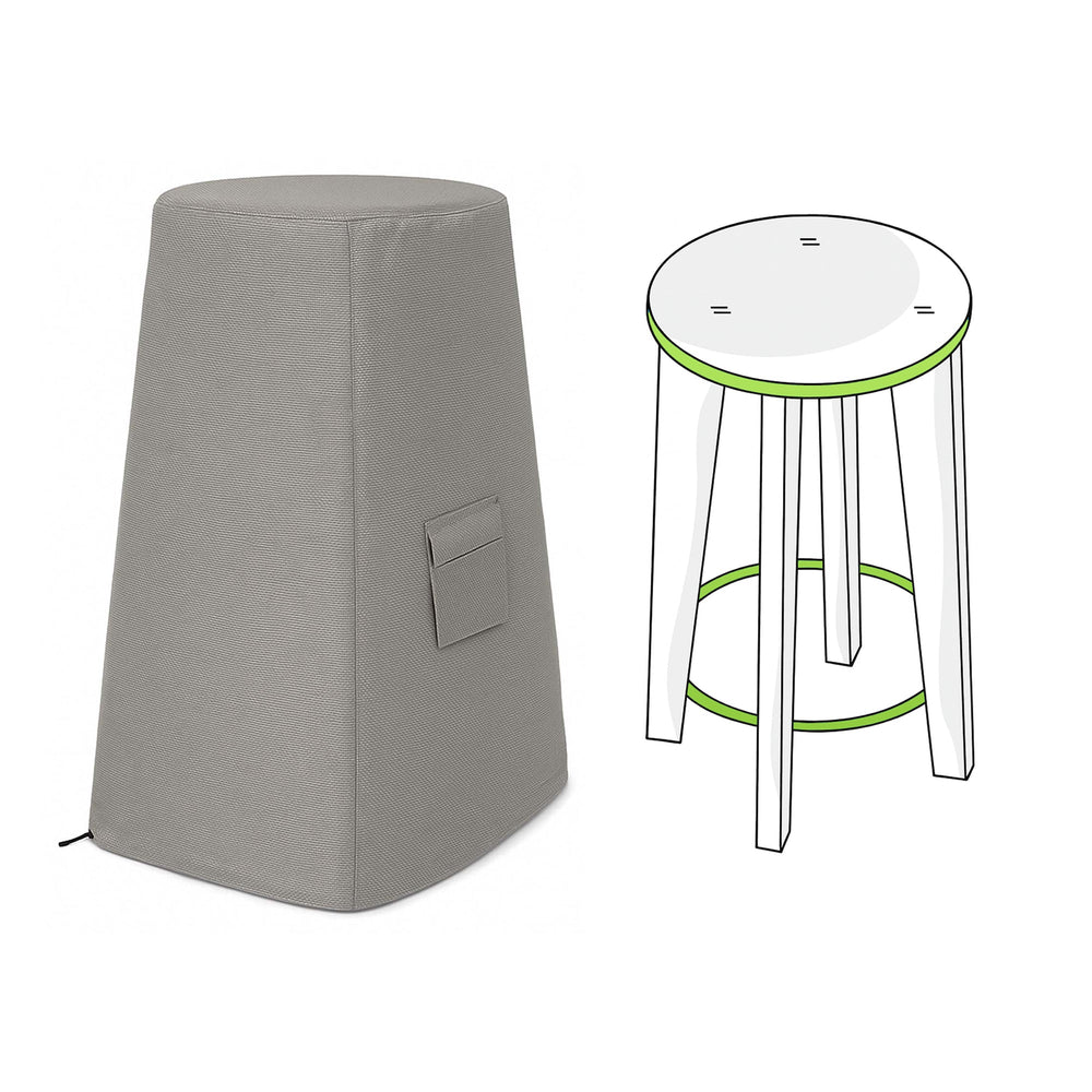 Our round bar stool covers are made with 18 oz PVC-coated polyester, a professional-grade material built for year-round use. The water-resistant surface repels rain, while UV protection prevents fading and cracking from sun exposure. Built-in air vents allow airflow to stop trapped condensation, keeping the stool dry. Reinforced seams protect against tearing, while the drawstring hem ensures the cover stays in place even in windy weather. Integrated handles allow for quick removal and easy storage.