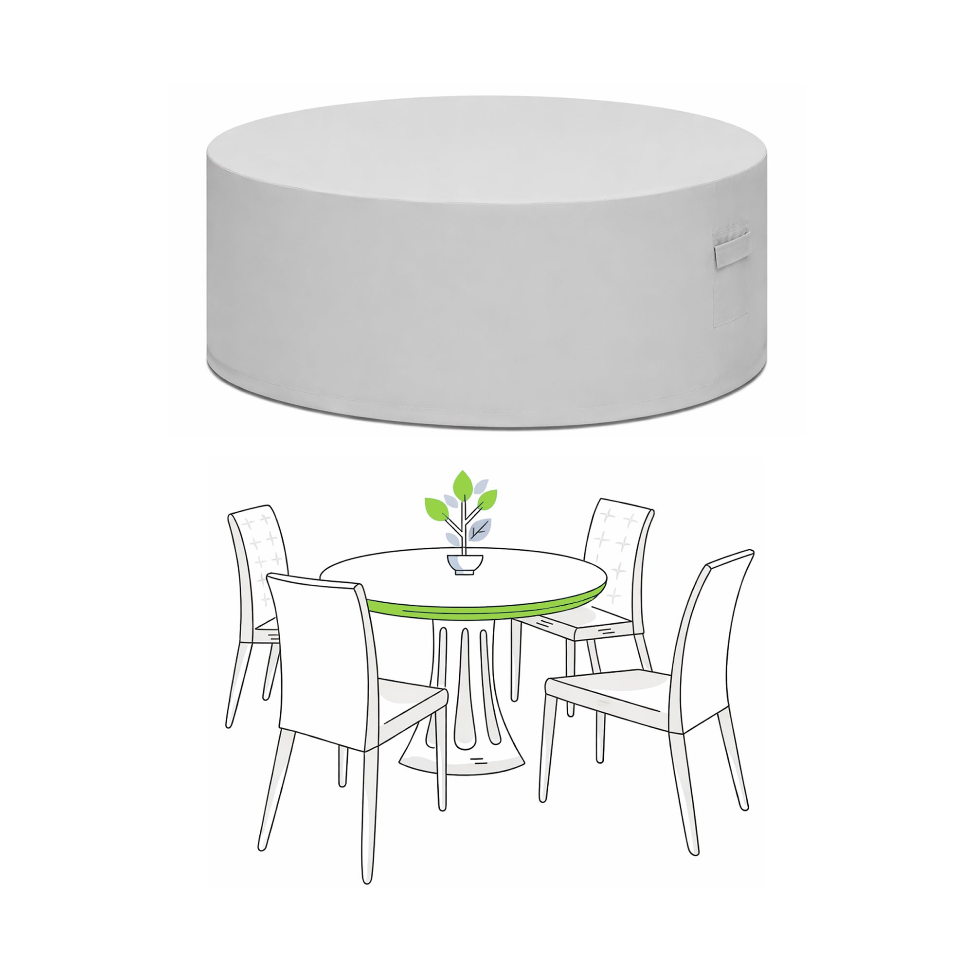 • Thoughtfully Designed: Optional drawstrings and grommets provide secure fastening around the circular base, keeping the cover in place during gusty winds. Sturdy integrated handles make setup and removal simple, even for larger round sets. Breathable construction prevents musty odors. Easy care and maintenance keep you worry-free year-round.