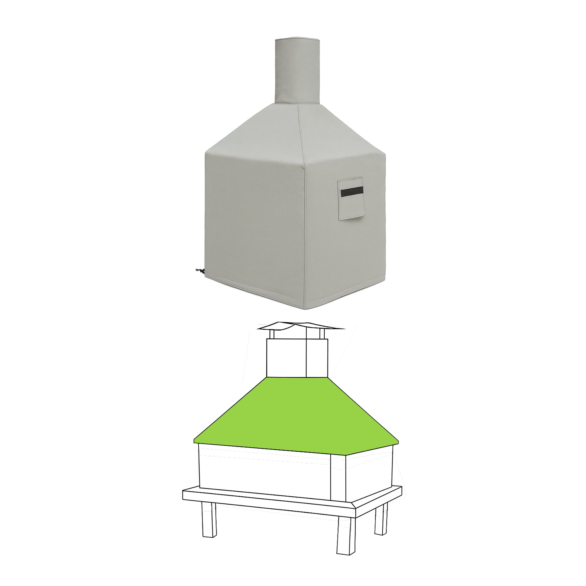 Each Custom Square Fire Pit Chiminea Cover is crafted from18 oz PVC-coated polyester, an industrial-grade outdoor fabric engineered to withstand extreme weather conditions and complex structural coverage. The heavy-duty PVC coating creates acompletely waterproof barrier that repels rain, snow, sleet, and moisture across all coverage zones—from the base fire pit through the hood and up the vertical chimney pipe.