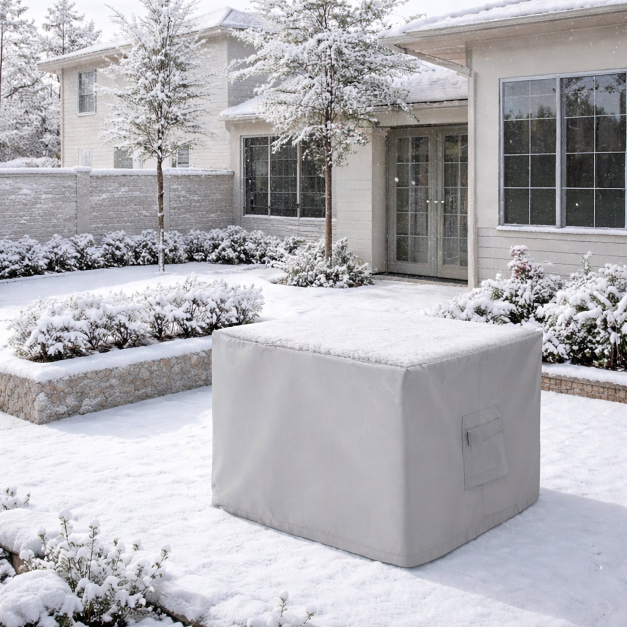 This Custom Square/Rectangle Dining Table Chair Set Cover - Style 4 is built specifically for elevated dining furniture. It covers the entire setup, table and chairs, without stretching, sagging, or loose corners.