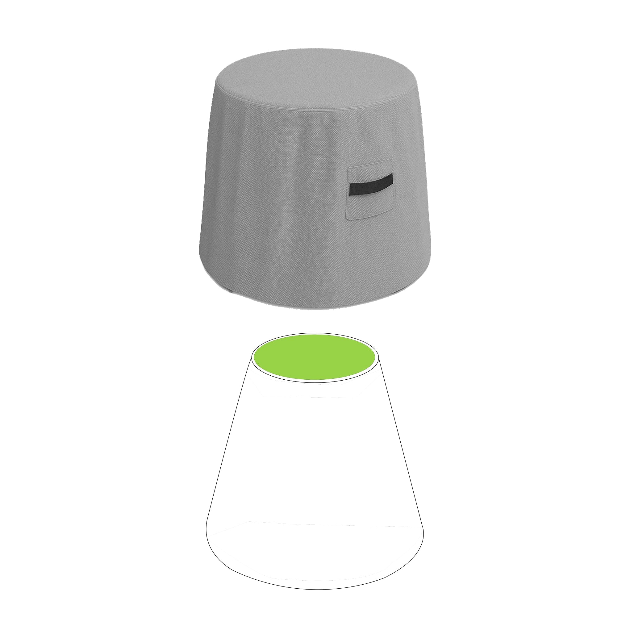 Truncated cone covers are ideal for tapered round furniture such as cone fire pits, barrel smokers, tapered planters, cone-shaped heaters, drum ottomans, and any circular furniture that's wider at the bottom than the top.